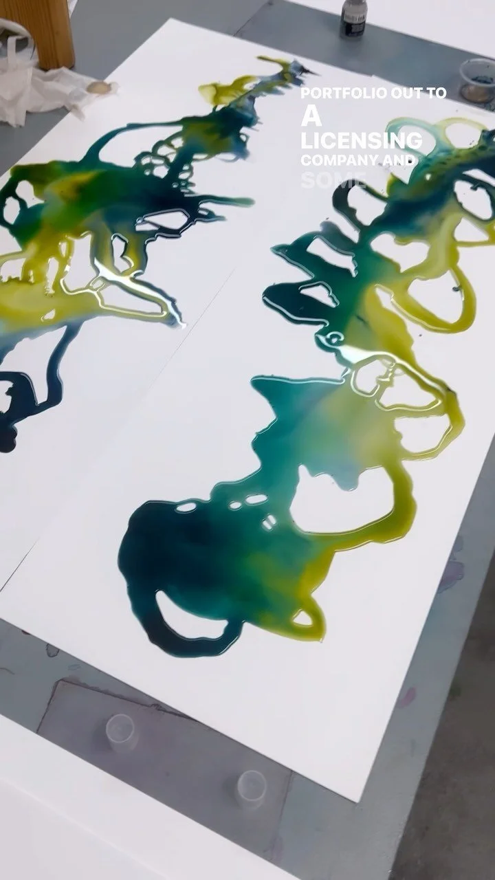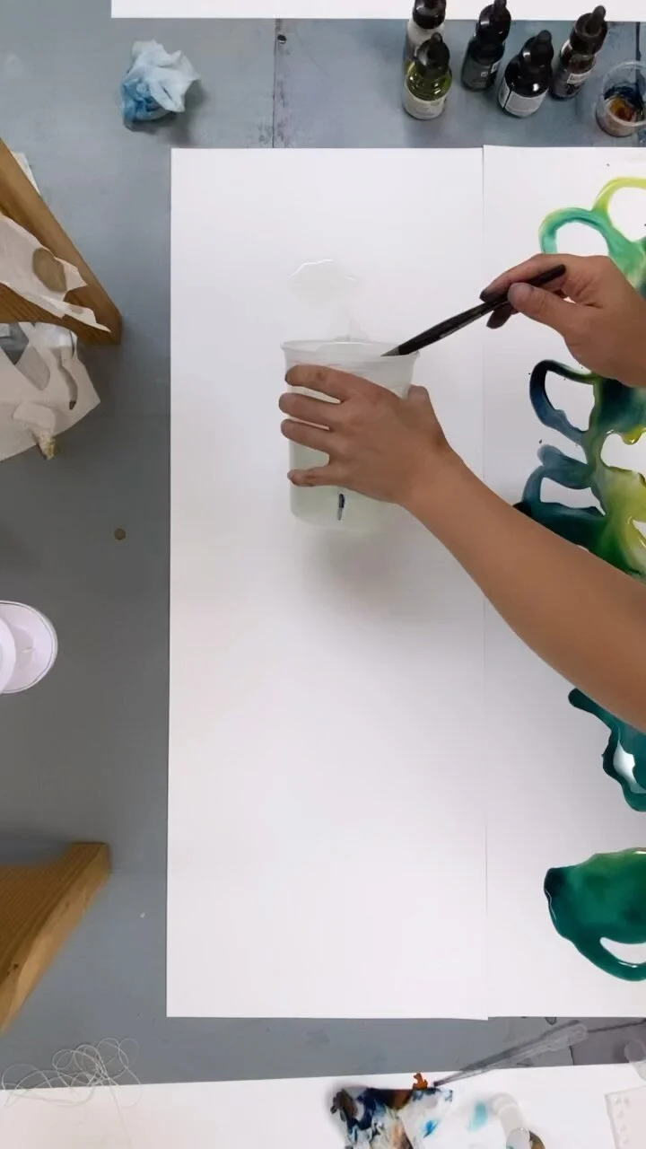 My greatest love besides my family is creating immersive paintings that draw you into a moment filled with wonder. I see my paintings as collaborations with something greater than me, call it mother nature, natural phenomena, or the universe. I choose the colors and other ingredients and put them on the surface of my paper and my invisible collaborator goes to work forming all the photographic detail you see in my work. I can be seen running into my studio in the morning when I know a painting is dry because I am so excited to see the transformation that has taken place. The process of collaborating with something beyond myself truly helps me to practice letting go of the need to have control. They don’t all turn out well, but the ones that do are truly one-of-a-kind visual miracles that could never be reproduced.